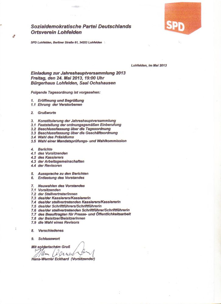 Der Ortsvereinsvorstand lädt recht herzlich zur diesjährigen Jahreshauptversammlung ein.