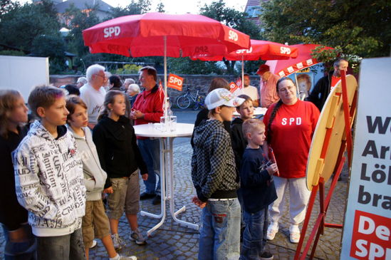 Während die Kinder malten und sich am Glücksrad betätigten blieb, bei einen schönen Gläschen Williams-Christ-Birne, für die Eltern - aber auch anderen interessierten Besucher – die Zeit zum schnuddeln und politisieren. Viele Kommunalpolitiker, auch aus anderen Parteien, fanden sich bei uns ein und genossen den frischen Abend in unserem Dorf.