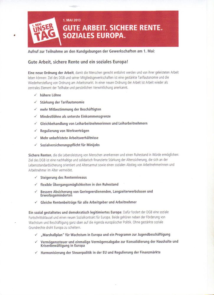 Aufruf des Deutschen Gewerkschaftsbund (DGB)