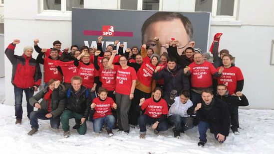 "Alle packen an" - natürlich auch die Ortsvereine. Ob in Braunschweig, Göttingen, Oldenburg, Emden oder Lüneburg, gemeinsam kämpft man für die SPD in Niedersachsen. Gemeinsam und generationsübergreifend: Denn auch viele JUSOS aus ganz Deutschland sind angereist. Ihnen geht es vor allem um die Abschaffung der Studiengebühren, gerechte Löhne und um gleiche Chancen für Frauen und Männer.