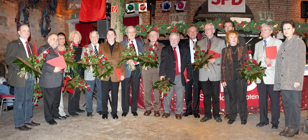 Die Urkunden für 40jährige Mitgliedschaft nahmen Dieter Birkelbach, Dieter Bodenbach, Heidrun Frank, Gretel Göbel, Karl Schäffer und Klaus Steffek entgegen, die 1969, als Willy Brandt Bundeskanzler wurde, der SPD beitraten. Es fehlte Wilma Dietrich, Karl Franke, Volkmar Gerstein und Mathilde Schollmeyer.