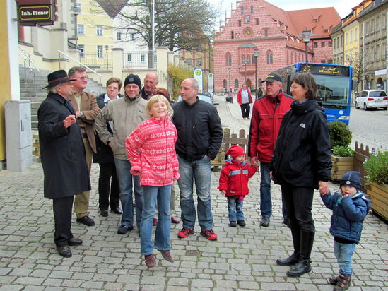 Desweiteren wurde u.a. ein Teil der Stadtmauer und die Synagoge besucht. Nach einer Stärkung ging es in den Stadtteil Rosenberg. Von den Ruinen der ehem. Rosenburg - heute ein Ehrenmal, wurden die Reste des seit 1987 zweimal in Konkurs gegangenen Stahlwerkes Maxhütte besichtigt. Gerd Geismann beschrieb wie der Niedergang eines der größten Stahlwerke Europas (11.000 Mitarbeiter) die Stadt und die Region zu lähmen drohten. Durch kluges und besonnenes Handeln sowie vielen Umstrukturierungs- u. Infrastrukturmaßnahmen der letzten zwei Jahrzehnte konnte die Stadt aber wieder auf Erfolgskurs zurück gebracht werden. Mittlerweile blühen die Industriegebiete wieder und große Unternehmen wie Stahlgruber und Prägefolien Kurz, die die Silberfolien der Euroscheine herstellen, haben sich hier angesiedelt. Mit einem Besuch der Wallfahrtskirche St. Anna und des Stadtmuseums ging die über 5-stündige Führung zu Ende.